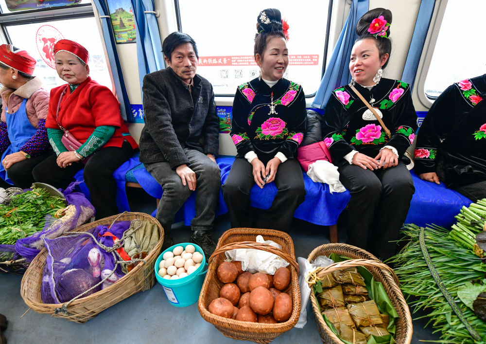 近年來(lái),搭上這趟“慢火車”外出賣菜的村民較多,列車成了熱鬧的“移動(dòng)集市”,是鄉(xiāng)親們走親訪友的“幸??燔嚒保前汛笊嚼锏霓r(nóng)特產(chǎn)品送到山外售賣的“致富快車”,被村民們稱為“村火車”。