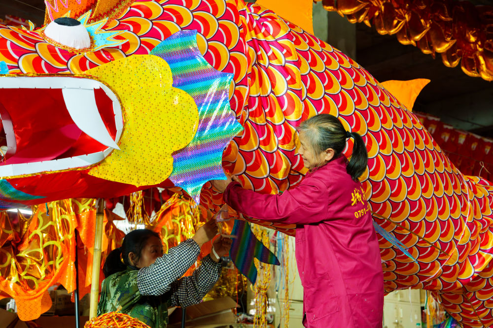 1月24日,城南龍燈廠(chǎng)2024年以來(lái)生產(chǎn)的第一萬(wàn)條傳統(tǒng)龍燈,從陳列館中被“請(qǐng)”出。
