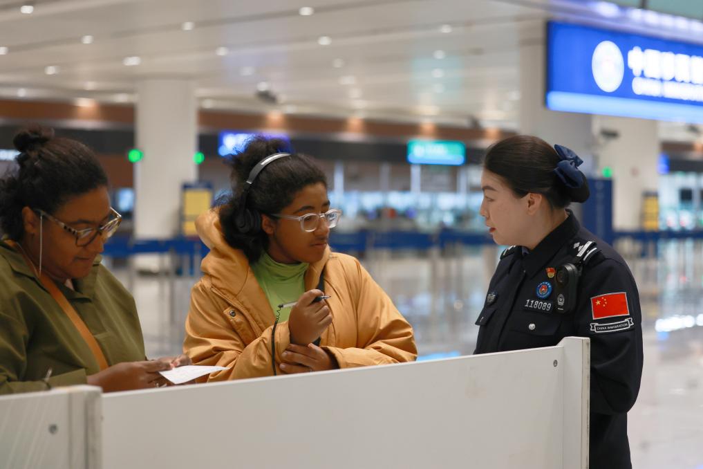 2024年12月17日起,過境免簽外國人停留時間延長為240小時。大興機場邊檢站進一步優(yōu)化提升通關體驗,率先實現同步辦理臨時入境許可、邊檢入境手續(xù)的“一站式”服務,旅客無需二次排隊。