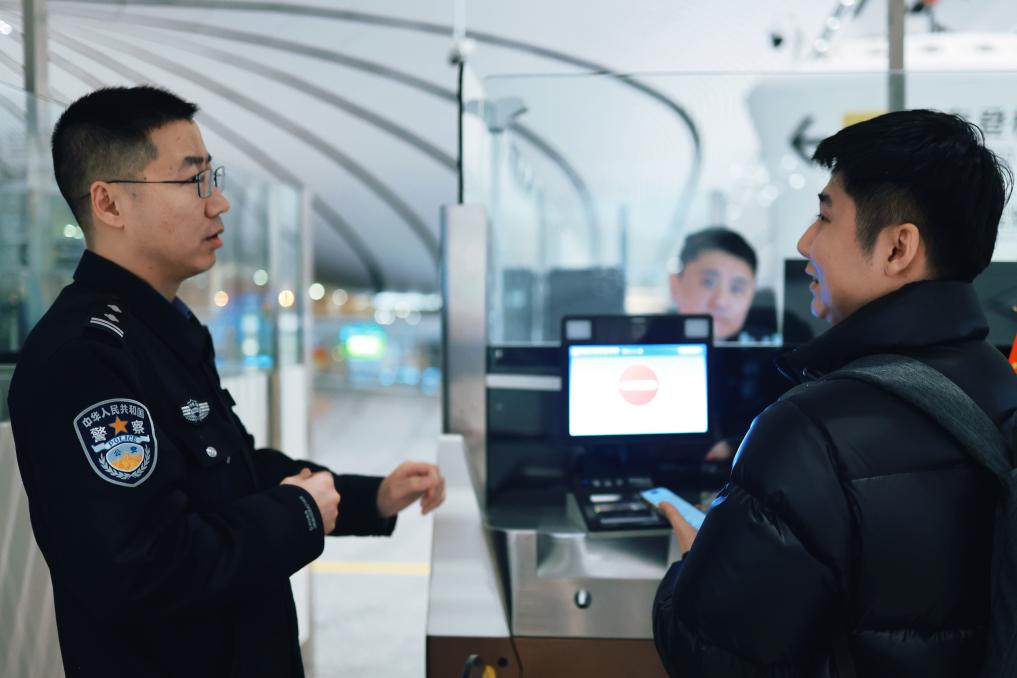 有周到的歡迎,也有詳實的問詢。得知年輕人姜勝天要單獨前往某國旅游,執(zhí)勤民警詳細了解他的出游計劃,核實了接待方情況才放行。