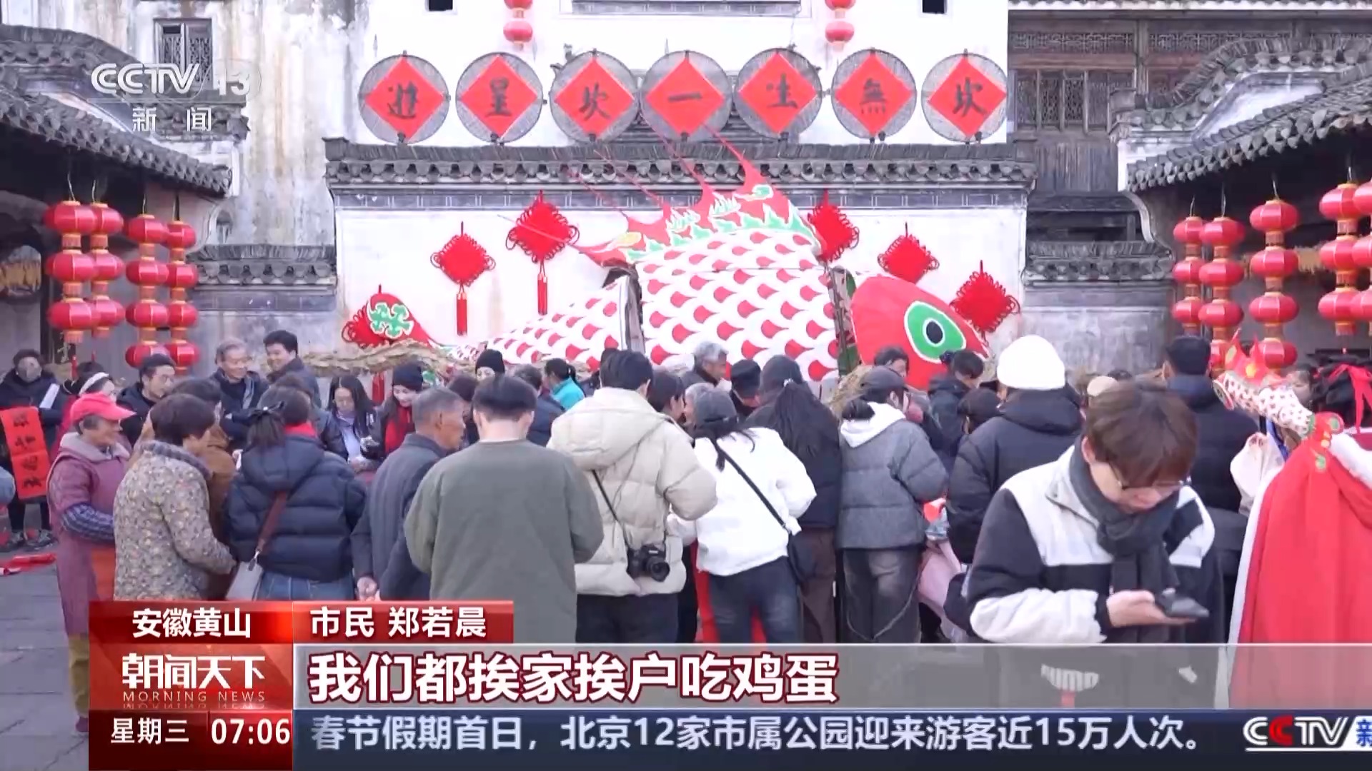 安徽黃山市民 鄭若晨:每年過年的時候,我們都挨家挨戶吃雞蛋。以前經(jīng)濟沒有這么發(fā)達的時候,雞蛋就是一個比較好的東西,拿出來招待客人。我們徽州人還是蠻延續(xù)傳統(tǒng)的春節(jié)習俗的。