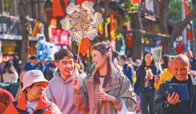 春節假期,游客在廣東省廣州市荔灣路花街游玩。