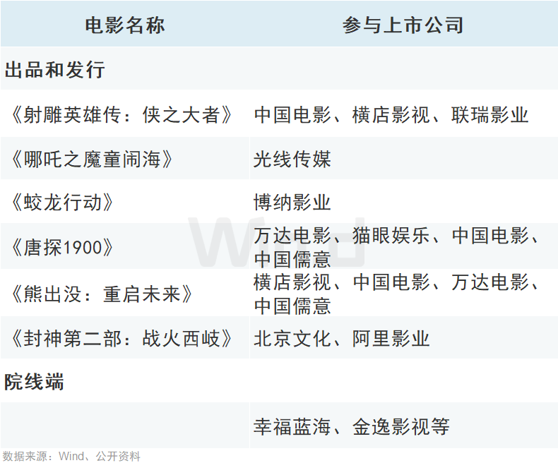 據公開資料整理,多家上市公司參與春節檔電影出品、發行等: