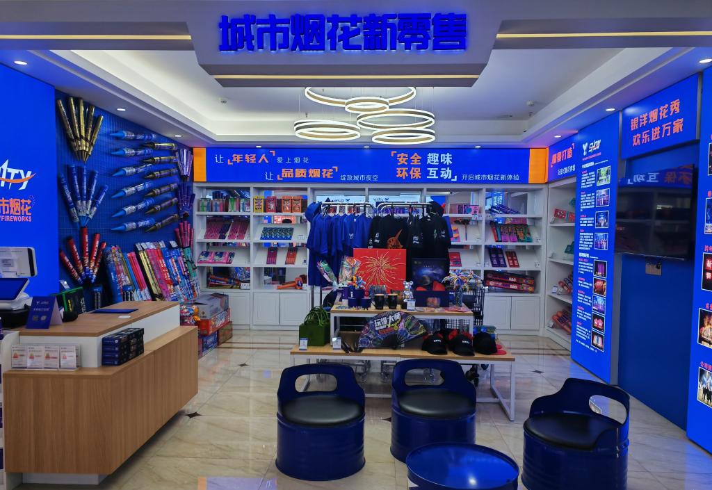 大瑤鎮一家花炮企業展示的城市煙花“新零售”門店。新華社記者 白田田 攝