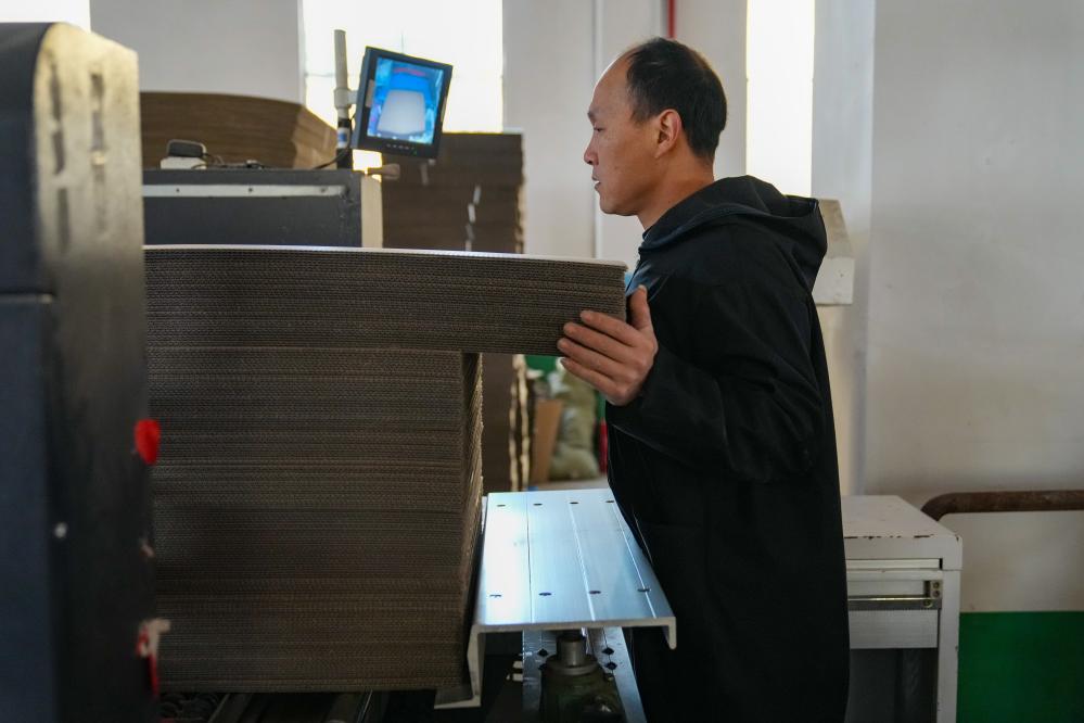 春節前后,位于大瑤鎮的瀏陽市凱洋包裝廠里,印刷、裁剪、折疊、黏合……自動化生產線每天下線5萬多個紙箱。