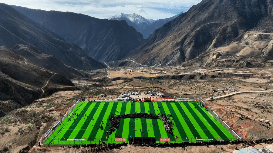 西藏昌都市洛隆縣馬利鎮平均海拔約3700米,高山深谷中,想要找到一片平地實屬不易,但地形條件沒有阻擋當地人對足球的熱愛。