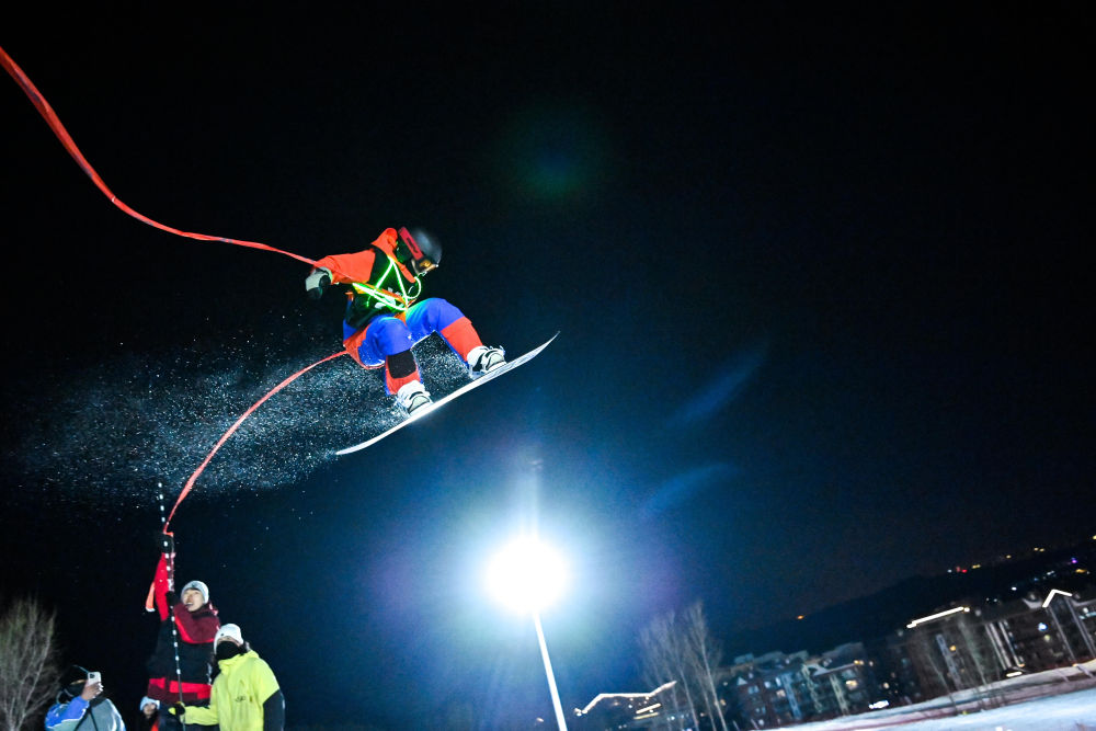 夜晚,位于長白山區與松嫩平原交會之地的萬科松花湖滑雪場內,漫威滑雪俱樂部的創始人丁寧和團隊成員,身著傳統滿族服飾,以動感音樂伴奏,齊整一排從寬闊的雪道滑下。這是他們今冬上演的第四場冰雪秀,以發源于長白山區的滿族風情收官。