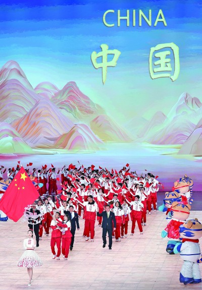 當中國代表團入場時,體育健兒揮手致意,現場觀眾起立鼓掌。在本屆亞冬會上,中國代表團將參加全部項目的比賽,并朝著“取得我國亞冬會參賽史上最好成績”的目標全力進發。