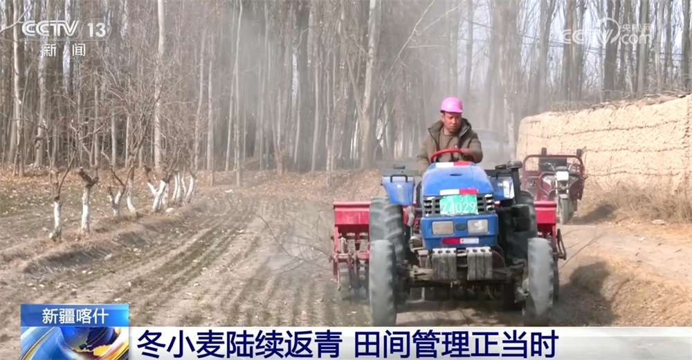 在新疆喀什阿依庫勒村,記者看到一袋袋肥料已碼放在地頭,拖拉機正在田間為冬小麥追施返青肥。為確保喀什地區(qū)冬小麥春季管理工作順利進行,當?shù)剞r(nóng)業(yè)部門結(jié)合當前冬小麥的長勢和天氣情況,科學(xué)指導(dǎo),組織做好冬小麥病蟲草害防治、保墑防凍、追肥等工作。