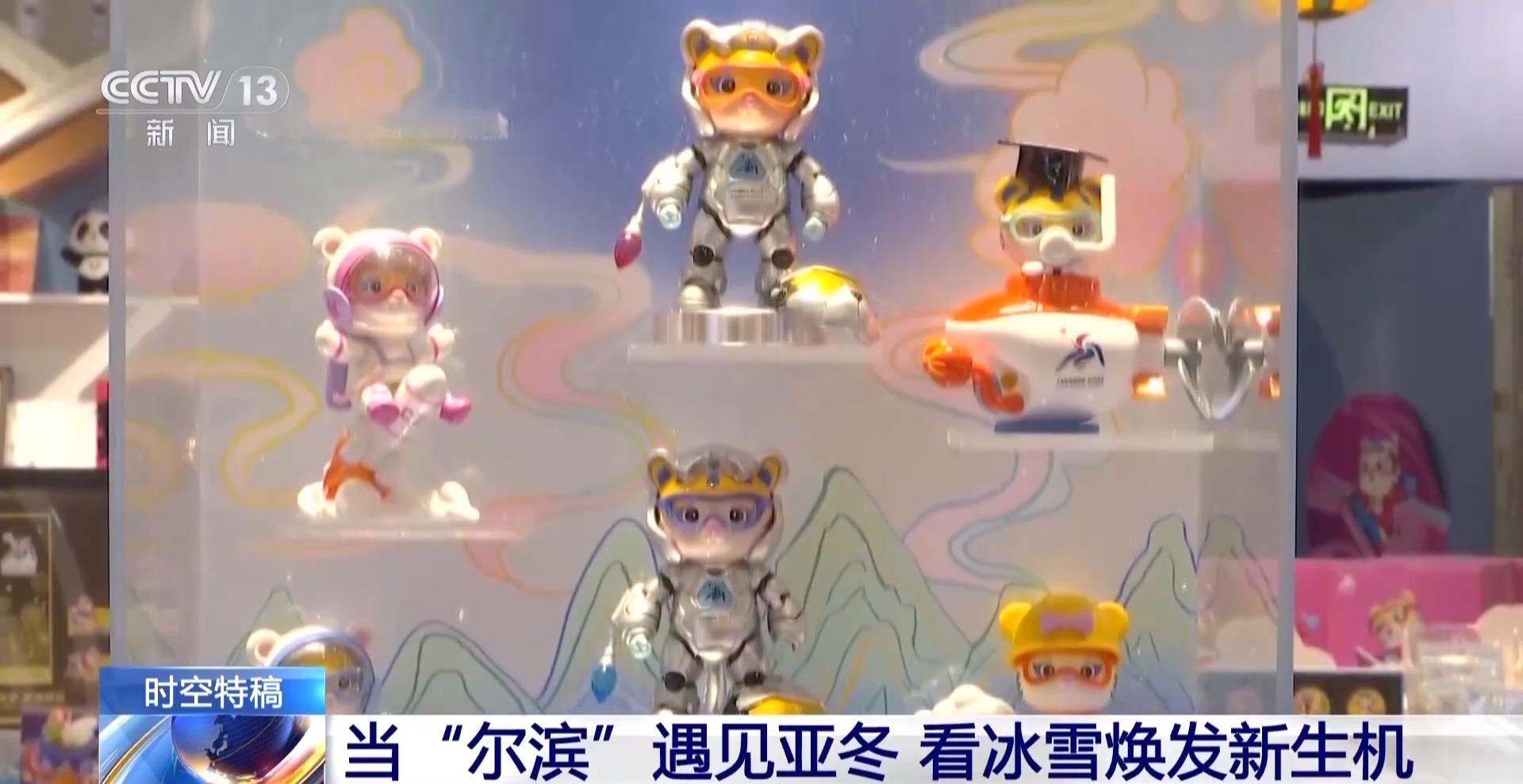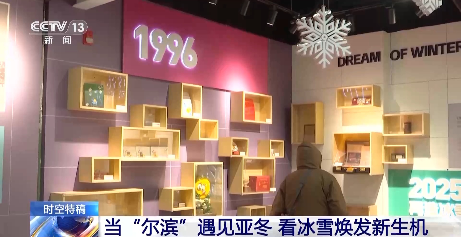 總臺央視記者 鄭怡哲:看完了亞布力的絕美雪景和熱鬧非凡的雪場,讓我們回到哈爾濱的市區來看一看。那要說什么地方最能體現黑龍江哈爾濱兩屆亞冬會城市這一端的變化,那一定是這個雙亞冬的紀念館,其實我覺得從紀念品上就能看出這個城市的特點和發展脈絡。