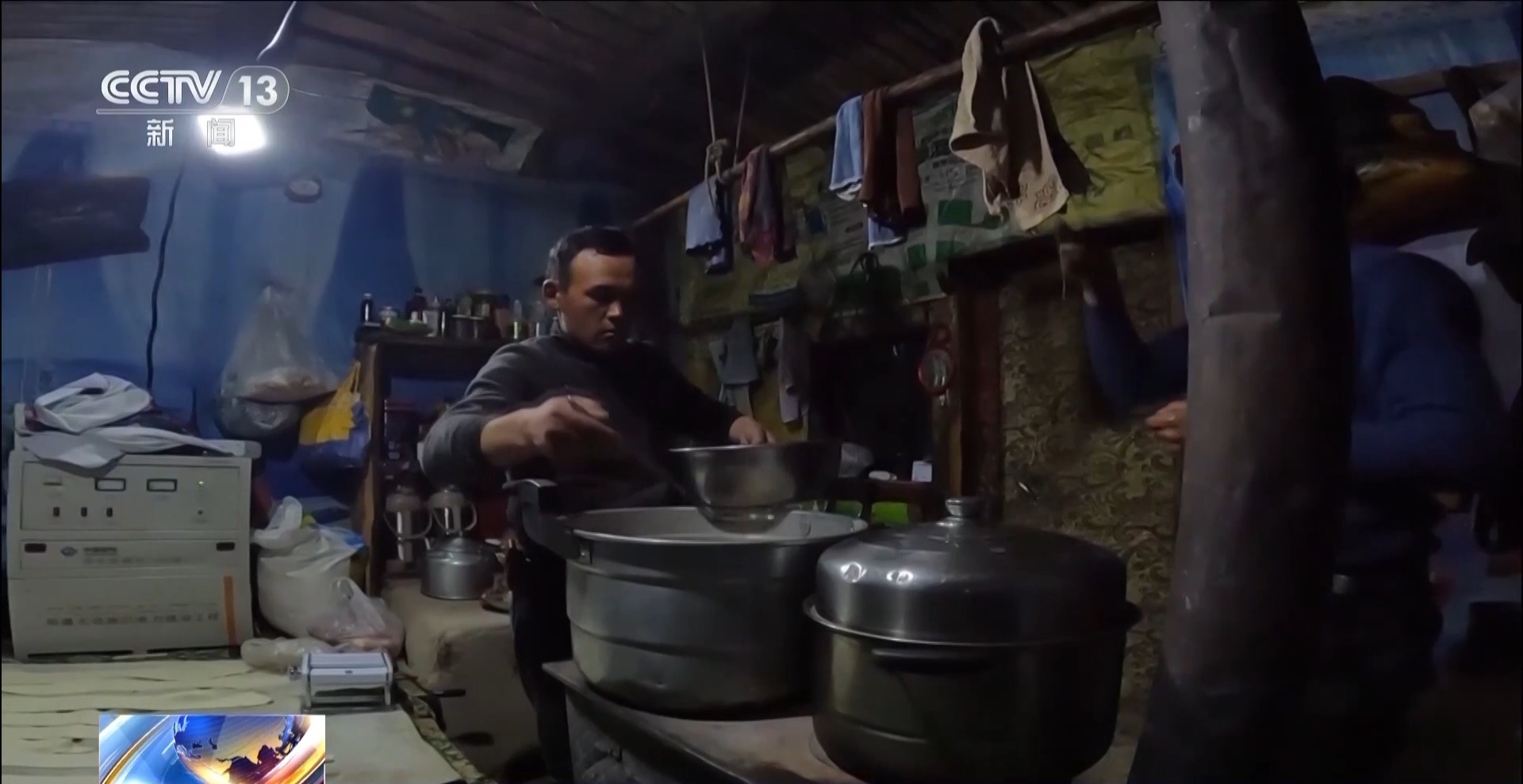 眼下的春季轉場對牧民來說,是四季轉場中最難的一次。牛羊經過一冬的嚴寒,缺乏新鮮飼草的飼喂身體變得瘦弱。加上大多是懷孕待產的母羊,轉場的路也異常嚴峻。天黑前,賽力克阿力一行到達了他們經過的第一個轉場服務站:克孜勒塔斯轉場服務站,在這兒,大家終于吃上了熱騰騰的湯面,牛羊也能在這里補飼休息。