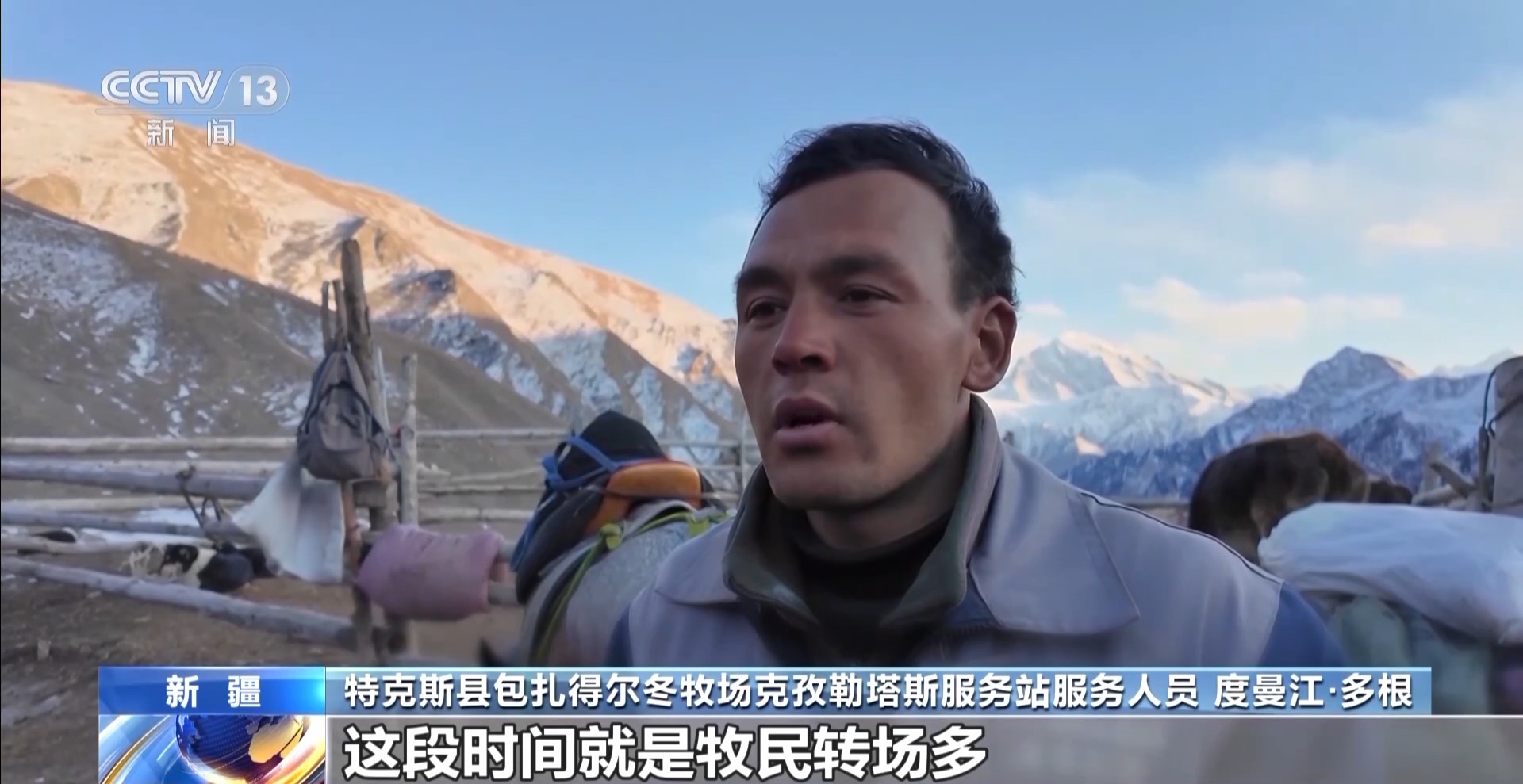 特克斯縣包扎得爾冬牧場克孜勒塔斯服務站服務人員 度曼江·多根:這段時間牧民轉場多,我們這里每天最少來三四個人,今天來了五家人,很熱鬧。