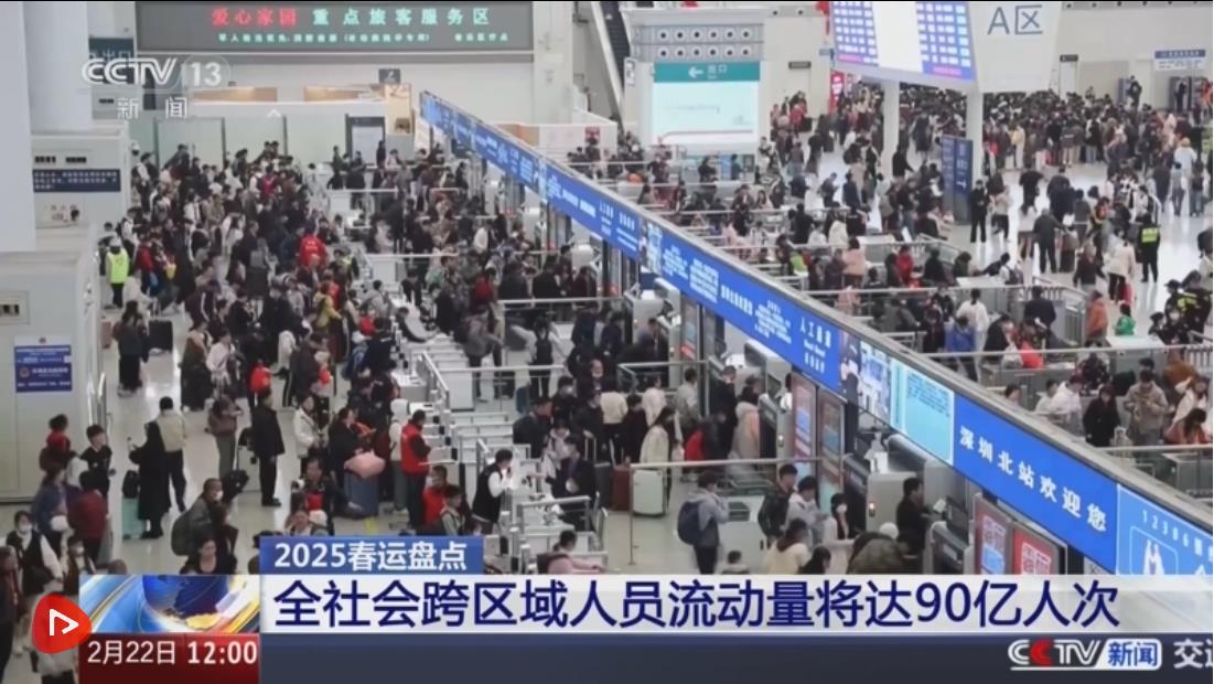 歷時40天的2025年春運2月22日將結束。今年春運從1月14日開始,多項數據創歷史新高。交通運輸部預計,整個春運期間,全社會跨區域人員流動量將達90億人次。