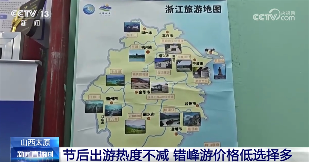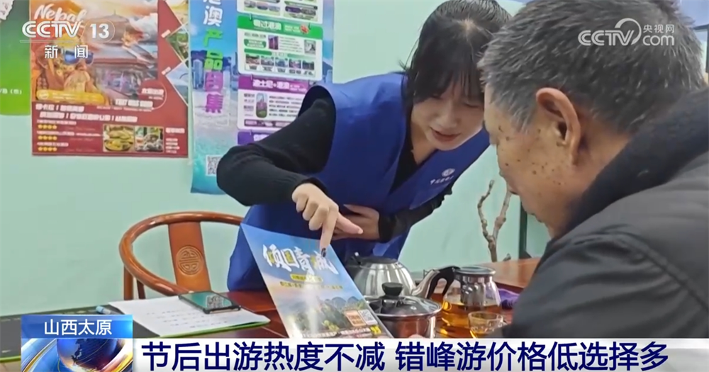 記者在山西太原市區的一家旅行社看到,宣傳海報擺放在顯眼位置,不少消費者前來咨詢近期的出游線路。