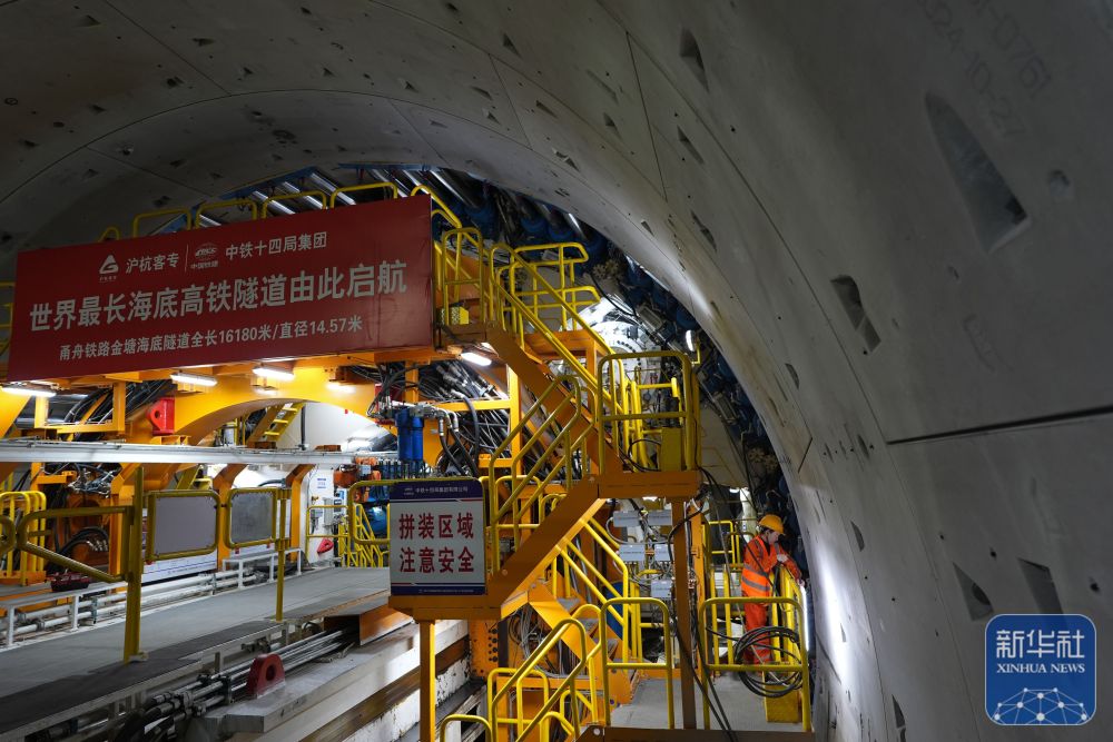 甬舟鐵路金塘海底隧道西起浙江寧波市北侖區,東至舟山市金塘鎮,全長16.18公里,是世界最長海底高鐵隧道。