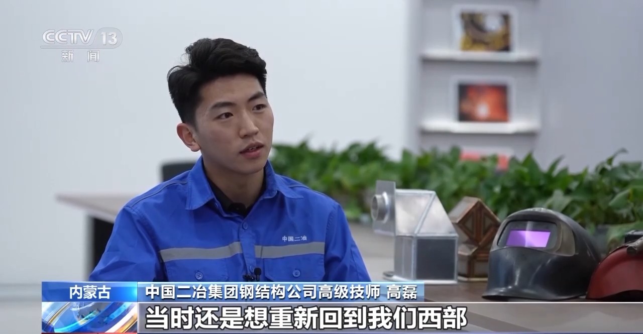 中國二冶集團鋼結構公司高級技師 高磊:我是從包頭學到的本領、學到的技術,當時還是想重新回到我們西部,回到內(nèi)蒙古。在這種條件下,通過專業(yè)性的技術人才的引進,對我也是一個更好的挑戰(zhàn)和一個更好的機遇和平臺。