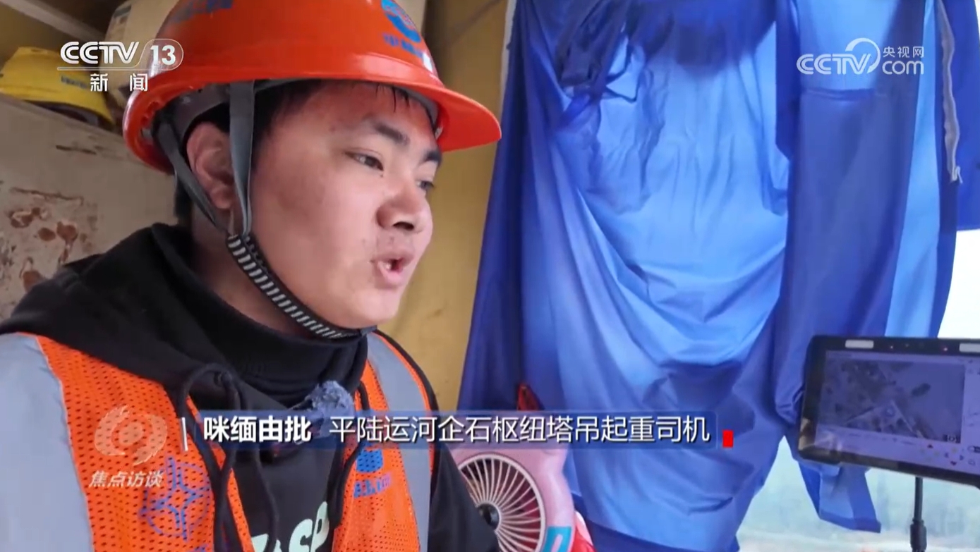 平陸運(yùn)河企石樞紐塔吊起重司機(jī)咪緬由批:“第一次爬的時(shí)候是40米的那種(塔吊),剛開(kāi)始就是特別害怕,腿也是發(fā)抖,一步一個(gè)腳印,就是冒著汗慢慢爬上來(lái),然后練成了這個(gè)膽量,慢慢就習(xí)以為常了。”