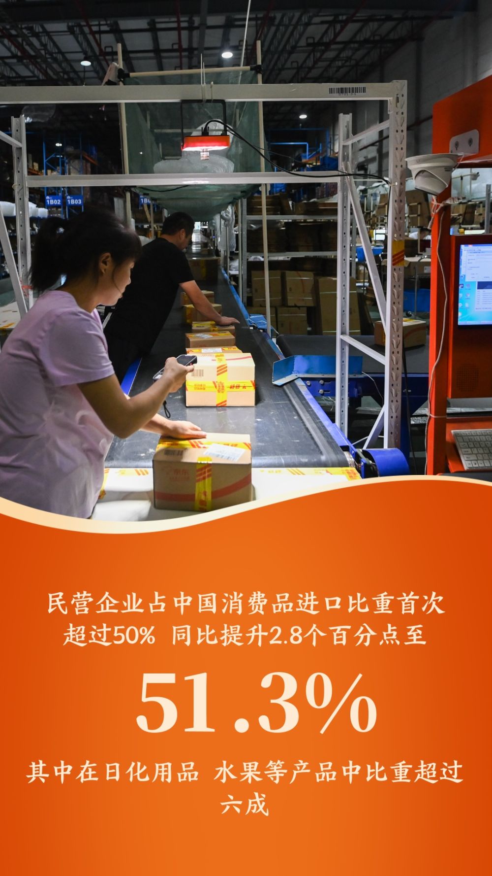 民營企業(yè)占我國消費品進口比重首次超過50%,同比提升2.8個百分點至51.3%,其中在日化用品、水果等產(chǎn)品中比重超過六成。