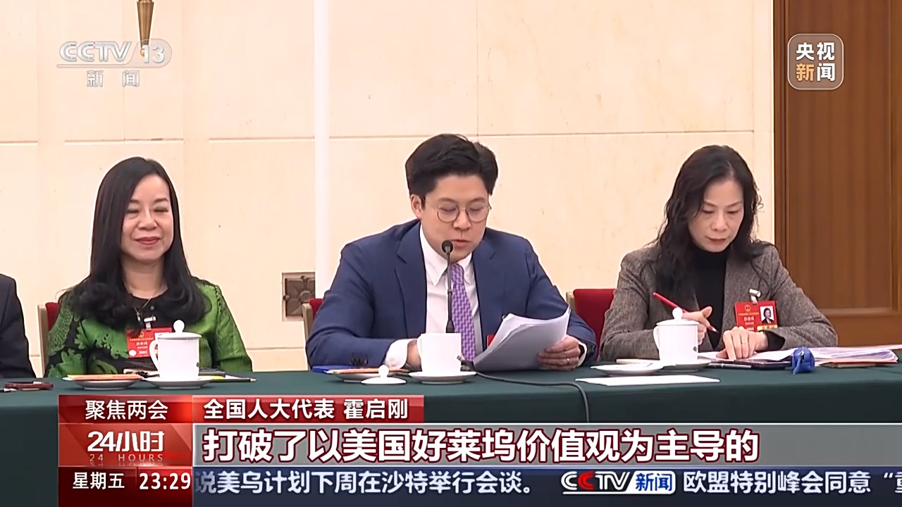 全國(guó)人大代表 霍啟剛:最近的《哪吒2》更創(chuàng)下票房歷史,打破了以美國(guó)好萊塢價(jià)值觀為主導(dǎo)的這種說(shuō)故事的方式,成功以我們中國(guó)的故事和中國(guó)的哲學(xué)感染世界的觀眾。我認(rèn)為香港可以更加用文化+的概念跟理念,在文化產(chǎn)業(yè)發(fā)展上作出更多的貢獻(xiàn),更以香港國(guó)際橋梁和傳統(tǒng)優(yōu)勢(shì),實(shí)現(xiàn)中國(guó)文化抱團(tuán)出海等,讓文化事業(yè)和文化產(chǎn)業(yè)得以相輔相成,把香港發(fā)揮成中華文化產(chǎn)業(yè)中的“金融港”和“出口港”。
