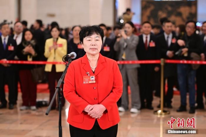 全國人大代表、天津東麗區華明街胡張莊村黨支部書記楊寶玲接受采訪。中新社記者 田雨昊 攝