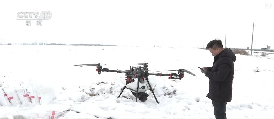 在烏蘇市八十四戶鄉楊家莊子村的高標準農田里,目前,冬雪還未融化,種糧大戶正在通過植保無人機噴灑雪融肥,預防雪腐雪霉病。