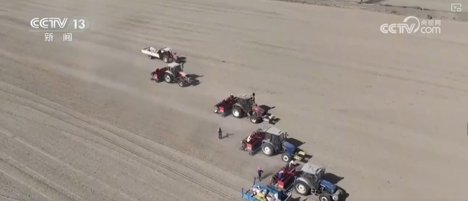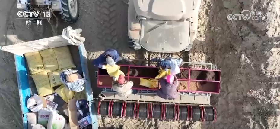 近日,甘肅酒泉金塔縣的10萬畝小麥開始播種。當地搶抓農時,推廣機械化手段,助力農業生產。
