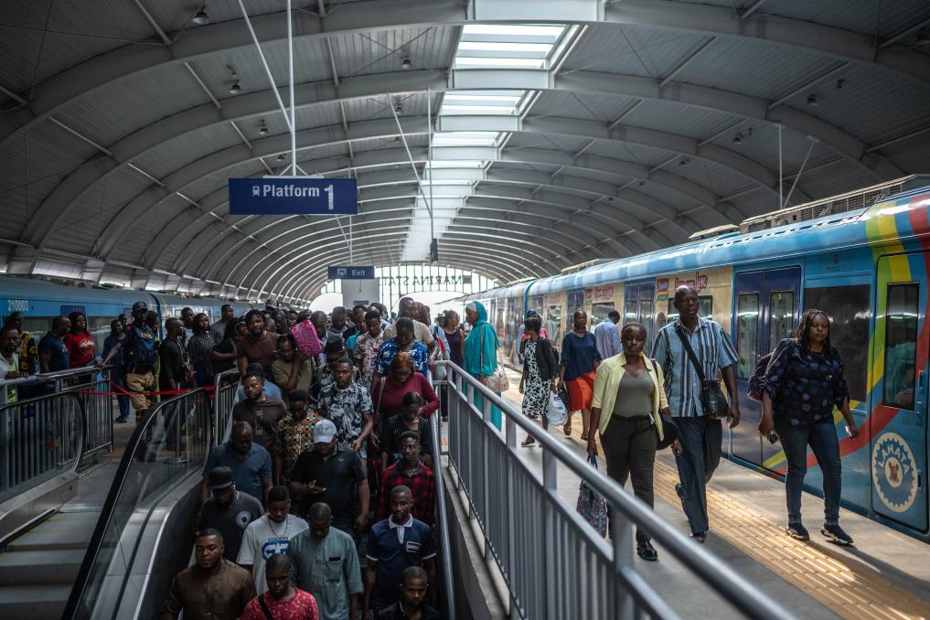 2024年12月2日,在尼日利亞拉各斯,乘客走在輕軌藍線的站臺上。拉各斯輕軌藍線是西非地區首條由中國企業自主設計、建造、施工、運營的電氣化城市軌道交通項目。新華社記者 王冠森 攝