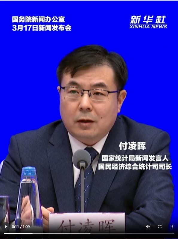 國家統(tǒng)計局新聞發(fā)言人、國民經(jīng)濟綜合統(tǒng)計司司長付凌暉表示,