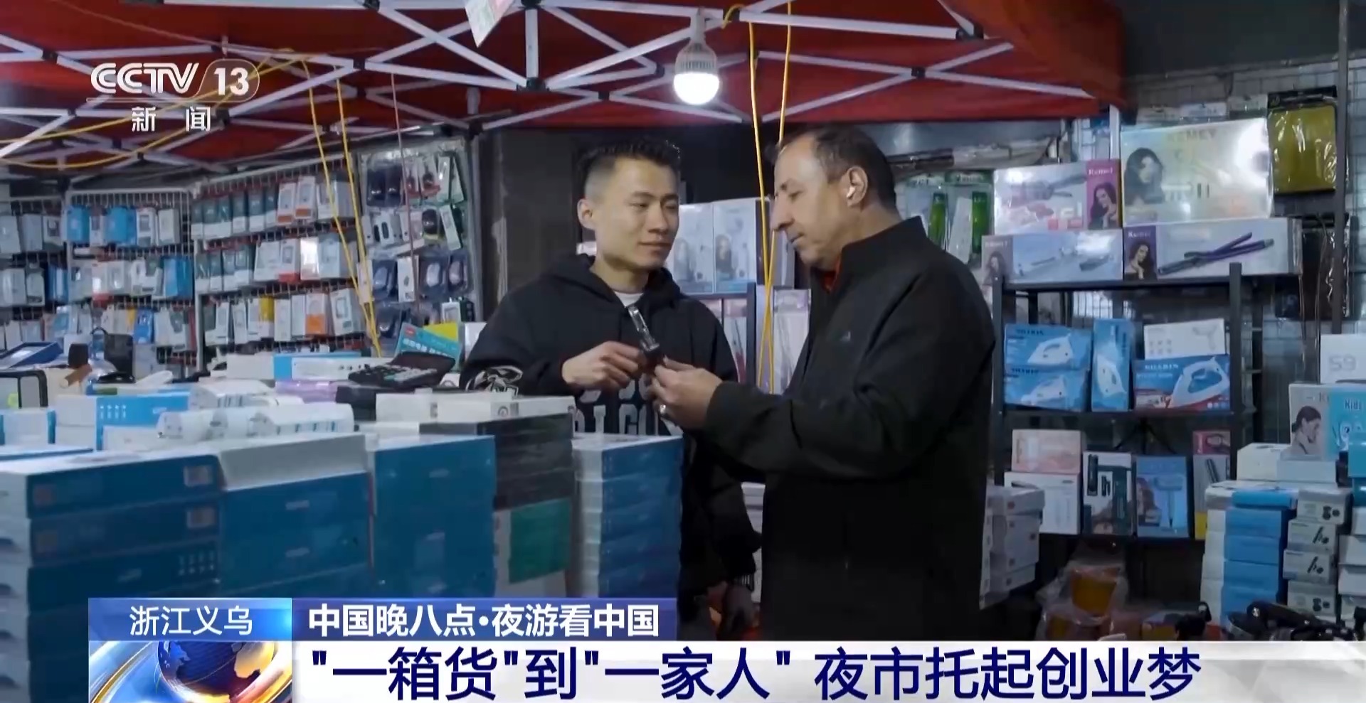 從一件貨品,到一箱貨,如今擁有一個固定的攤位,他不僅收獲了穩定的客源,甚至和外國客商成了朋友,夜市讓他收獲了事業,讓他遇見了自己的另一半,他說,在夜市讓他覺得“生活,就是要生機勃勃地奮斗著”。