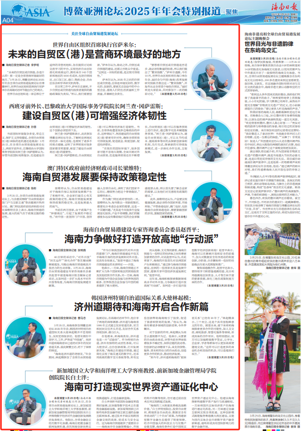 3月25日下午,全球自由貿易港發展論壇在博鰲舉行。海南日報全媒體記者 王程龍 攝