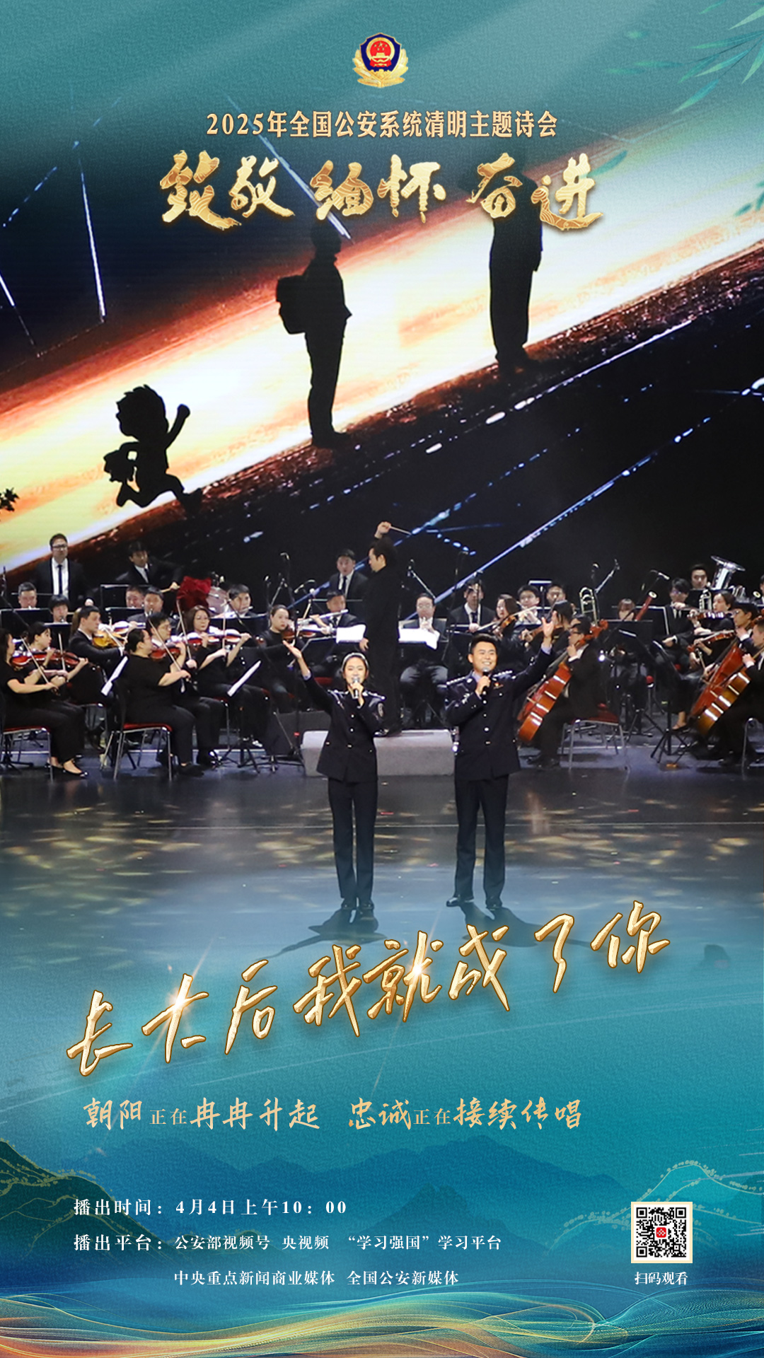 為充分展現(xiàn)全國公安機關和廣大公安民警、輔警時刻銘記習近平總書記的關心關懷,時刻為黨和人民而戰(zhàn)的忠誠政治本色,深情追憶一年來公安系統(tǒng)涌現(xiàn)的英雄模范感人事跡,激勵引導廣大公安民警以更加奮發(fā)有為的精神面貌,堅決履行好黨和人民賦予的神圣職責使命,今年清明節(jié)當天,公安部新聞宣傳局、全國公安文聯(lián)、四川省公安廳聯(lián)合舉辦“致敬·緬懷·奮進”2025年全國公安系統(tǒng)清明主題詩會。