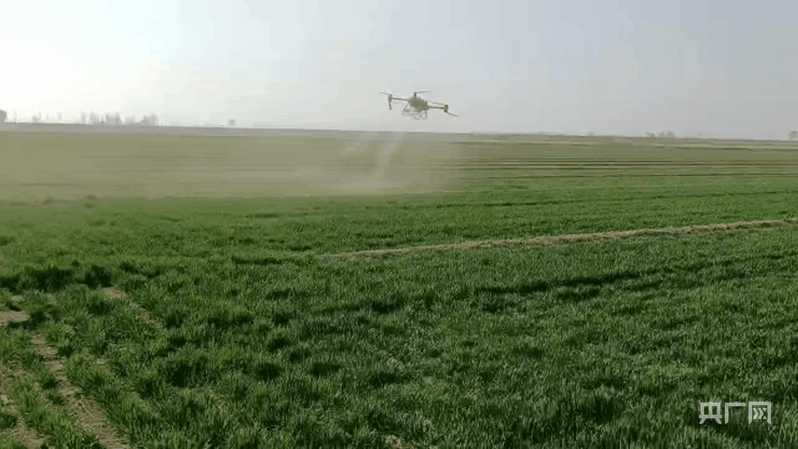 無人機正在田間作業(央廣網記者 褚夫晴 攝)