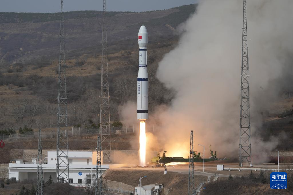 4月3日10時12分,我國在太原衛星發射中心使用長征六號運載火箭,成功將天平三號A星02星發射升空,衛星順利進入預定軌道,發射任務獲得圓滿成功。新華社發(王亞鵬 攝)
