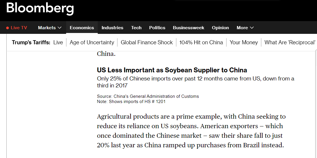 報道稱,美國作為中國大豆供應商的重要性下降進一步凸顯了中國的戰略調整。據中國海關總署數據,過去12個月,中國僅25%的進口大豆來自美國,美國在中國大豆進口市場份額進一步收縮。這為北京爭取更多時間,直至雙方重回談判桌。