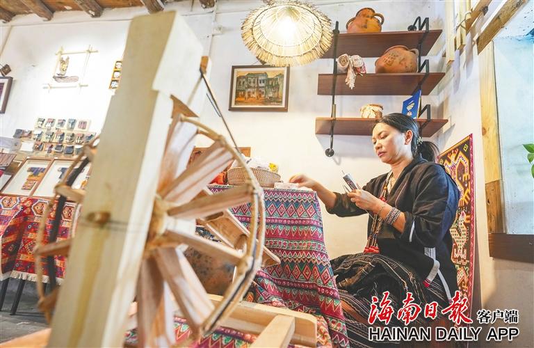 東方市八所鎮北黎村,村民在店內織錦。海南日報全媒體記者陳元才 攝