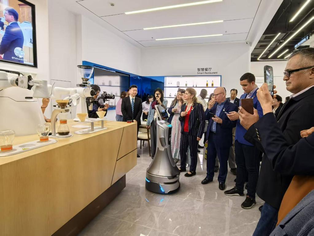 機(jī)器大廚、機(jī)器舞者、機(jī)器咖啡師……在九江機(jī)器人小鎮(zhèn),使節(jié)們與各種功能的機(jī)器人“親密接觸”,現(xiàn)場(chǎng)體驗(yàn)智慧家居、智慧政務(wù)、咖啡機(jī)器人、無(wú)人餐廳帶來的便捷。