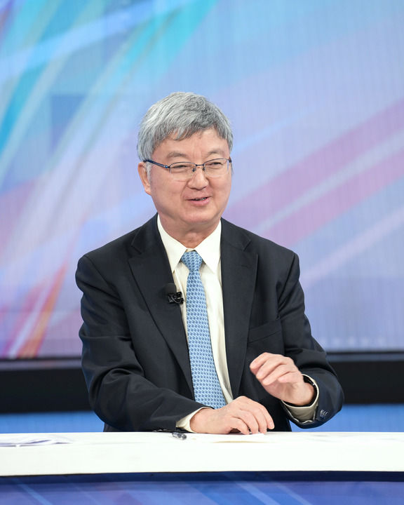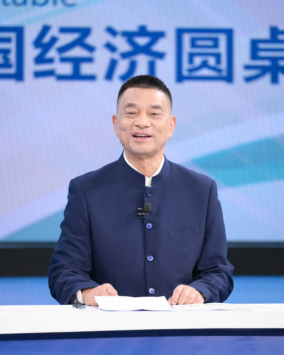 中國國際經濟交流中心資深專家委員朱民在第十五期“中國經濟圓桌會”錄制現場發言。新華社記者 李賀 攝