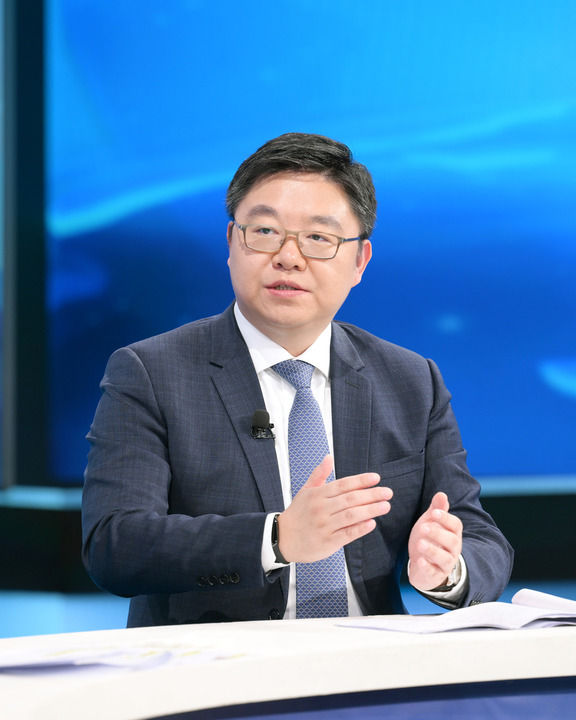 國家發展改革委民營經濟發展局副局長劉民在第十五期“中國經濟圓桌會”錄制現場發言。新華社記者 李賀 攝