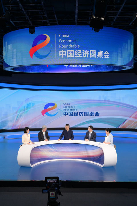 嘉賓們在第十五期“中國經濟圓桌會”大型全媒體訪談節目錄制現場交流發言。新華社記者 李賀 攝