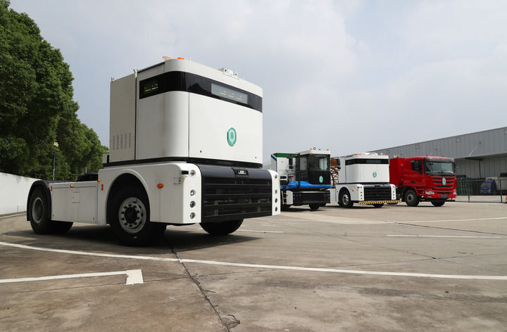 2023年9月26日,一輛西井科技的無人駕駛重卡Q-Truck(前)在位于上海的無人駕駛商用車聯合實驗室場地上進行動態測試。新華社記者 方喆 攝