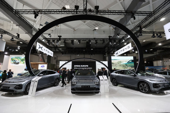 2025年1月10日,在比利時布魯塞爾,人們參觀2025布魯塞爾車展上的小鵬汽車展區。新華社記者 趙丁喆 攝
