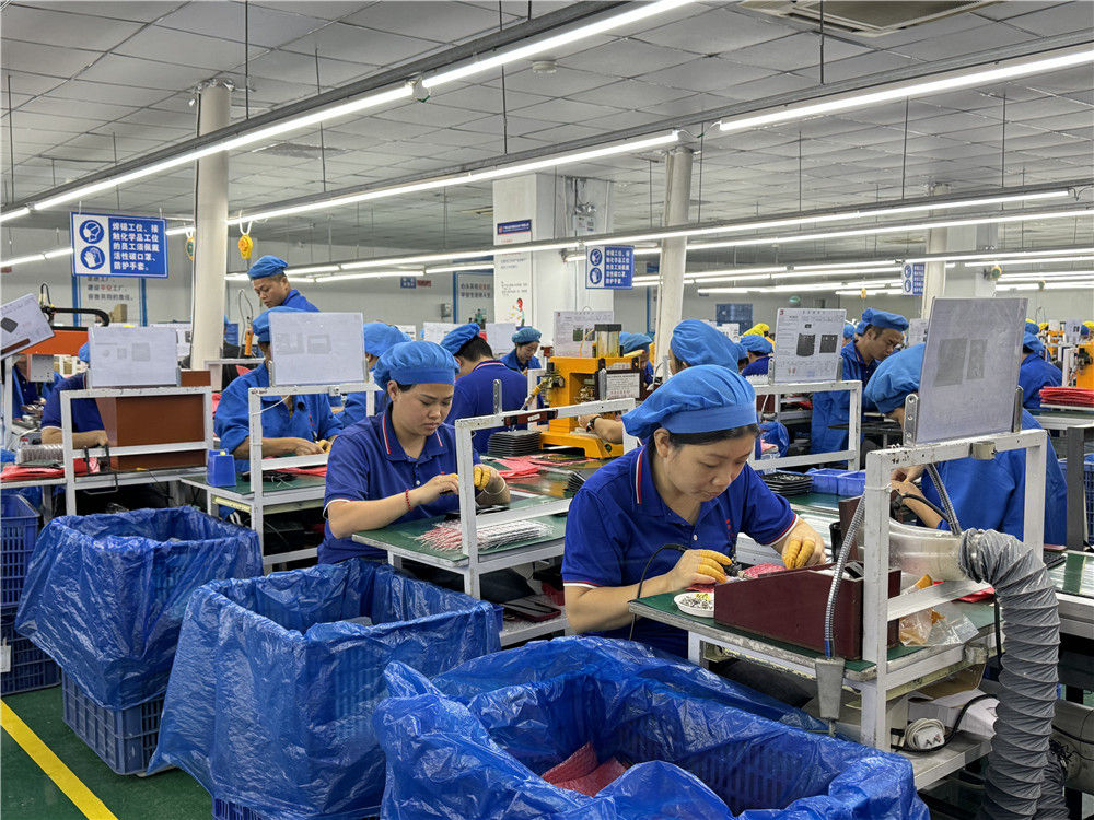 工人在廣西北流泰宏達電子有限公司車間內忙碌(2024年12月9日攝)。新華社發(李洪健 攝)
