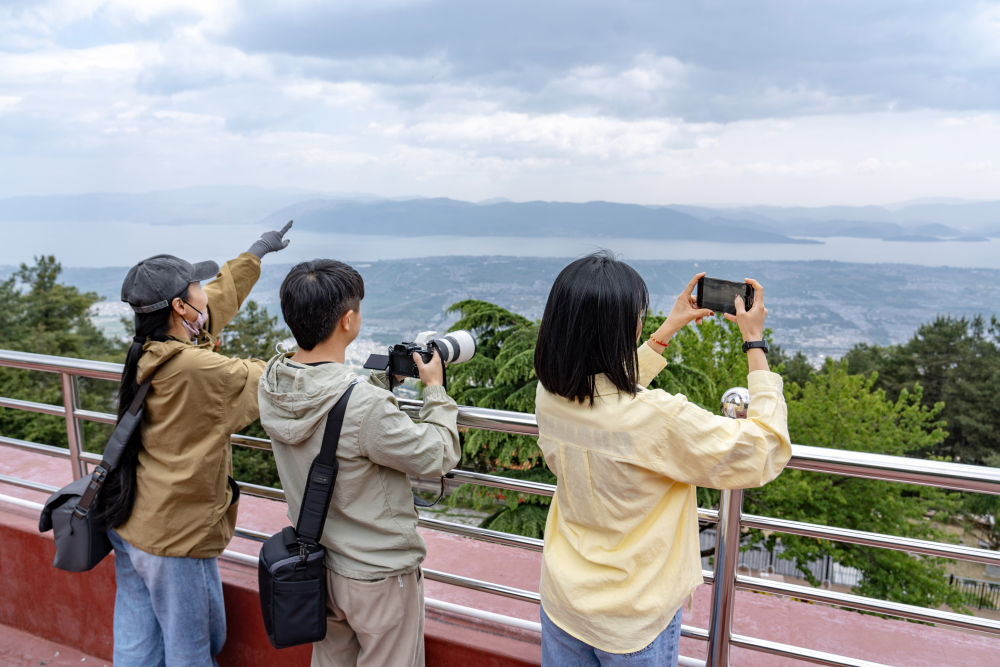 2025年4月23日,游客在大理蒼山玉帶路欣賞風光。新華社發(羅鑄攝)