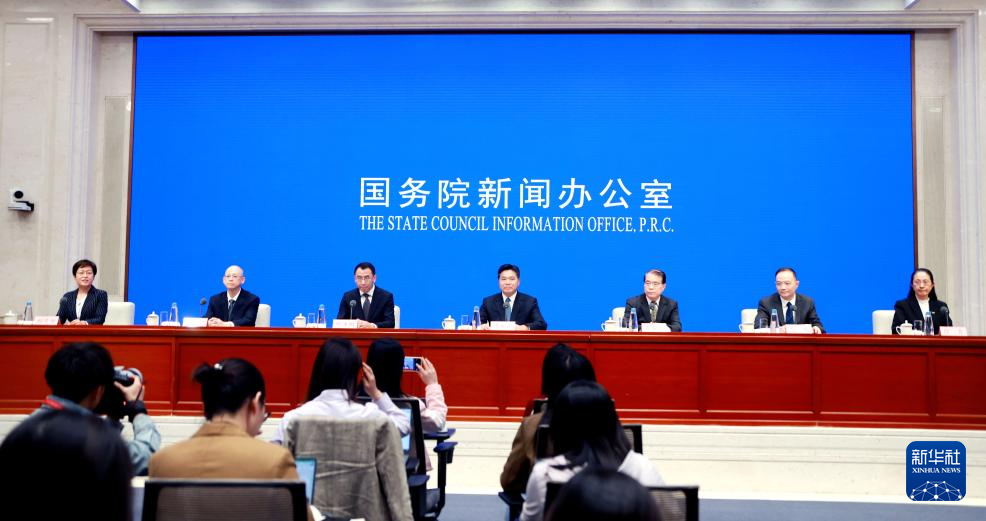 4月27日,國務院新聞辦公室在北京舉行新聞發布會,商務部副部長盛秋平、財政部稅政司司長賈榮鄂、文化和旅游部產業發展司司長繆沐陽、海關總署口岸監管司司長夏俊、稅務總局貨物和勞務稅司司長謝文、中國民航局運輸司司長徐青介紹優化離境退稅政策擴大入境消費有關情況,并答記者問。新華社記者 潘旭 攝
