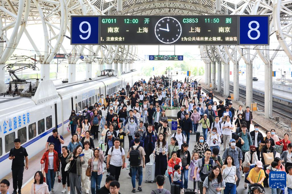 4月30日,旅客在南京火車站乘車出行。新華社發(蘇陽 攝)