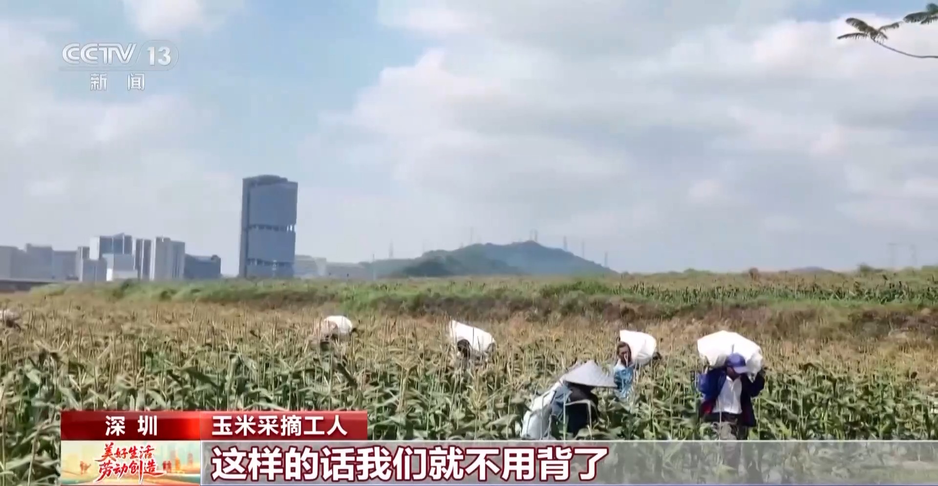 總臺央視記者 張春玲:在深圳光明區,2000畝的玉米地都已經成熟了,這次我的工作當中有了一個新搭子——采摘小車。