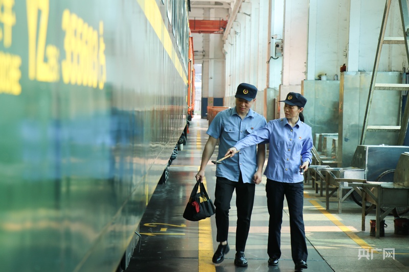 吳園梅和徒弟正在檢修車輛(央廣網記者 劉培俊 攝)