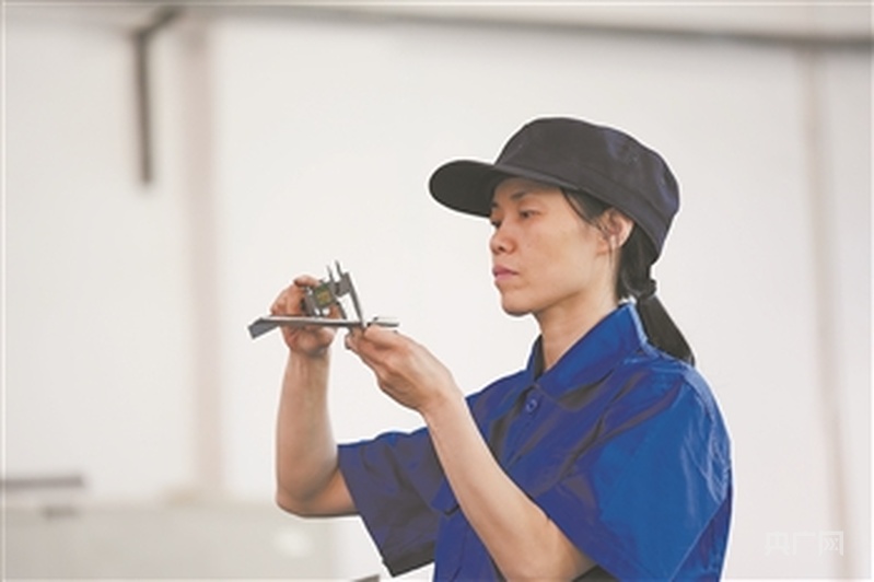 吳園梅在校準自制的直角尺(央廣網發 步楊星 攝)