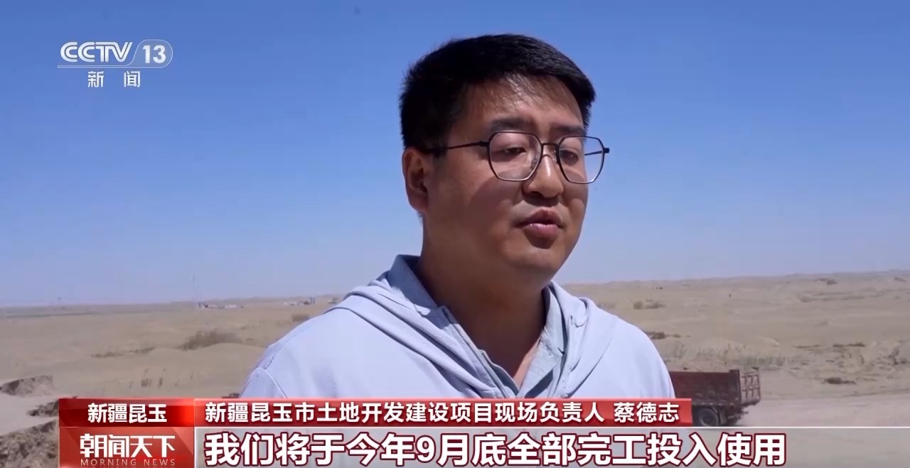 新疆昆玉市土地開發建設項目現場負責人 蔡德志:我們將于今年9月底全部完工投入使用,已完成現場總進度的75%。