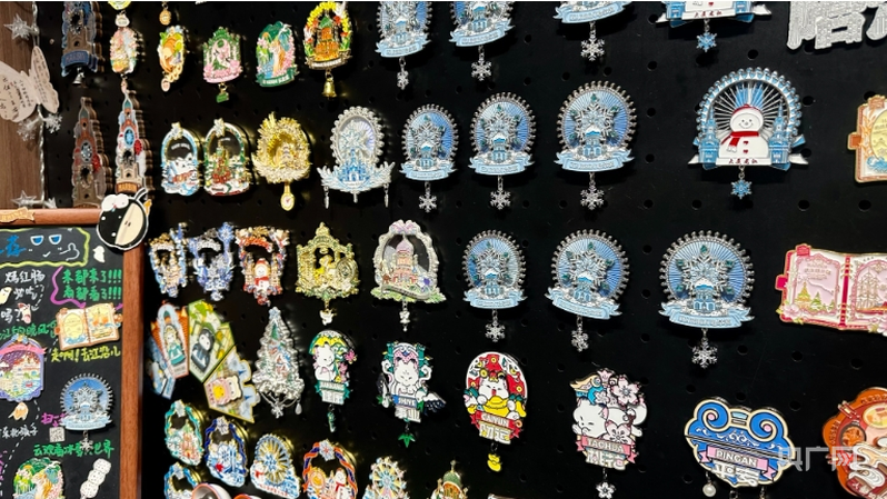 假日期間,各大文博場館、歷史文化街區等把握住機遇,推陳出新,創新形式,滿足游客多元化需求。哈爾濱中央大街將城市文化與AR技術相融合,推出了兼具科技感與城市文化的文創產品?!斑@款冰箱貼在去年的基礎上做了一個全新升級,結合AR技術,通過手機‘掃一掃’功能,可以看到一個動態視頻,實現裸眼3D的效果。”中央大街龍粵魔法列車總經理于洋說。